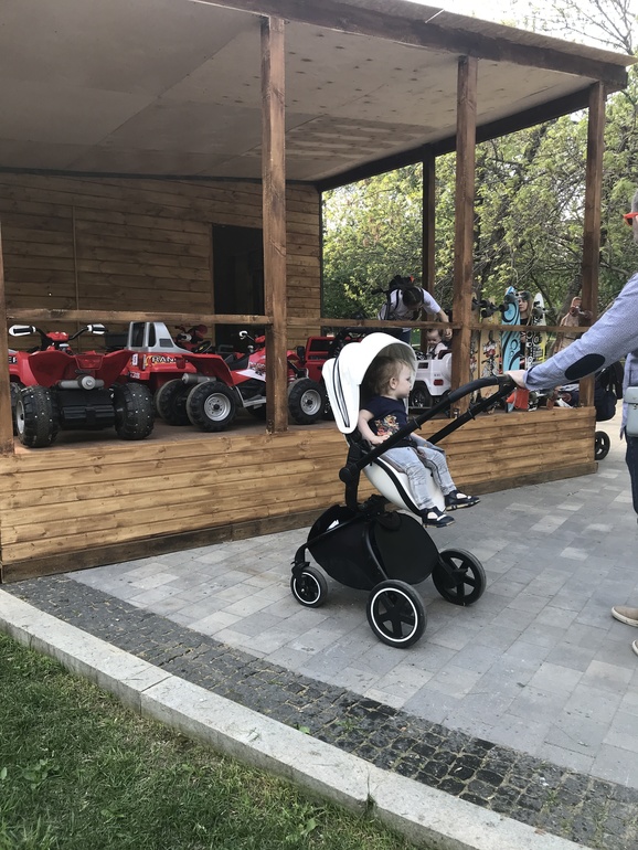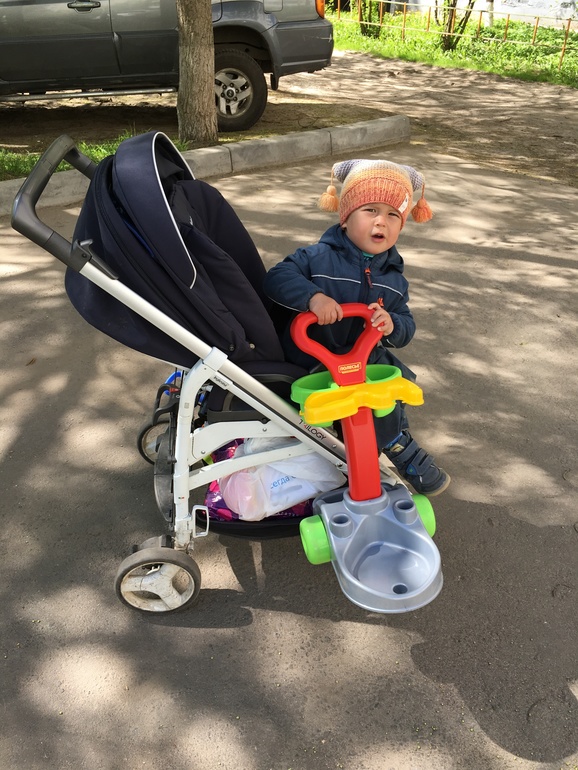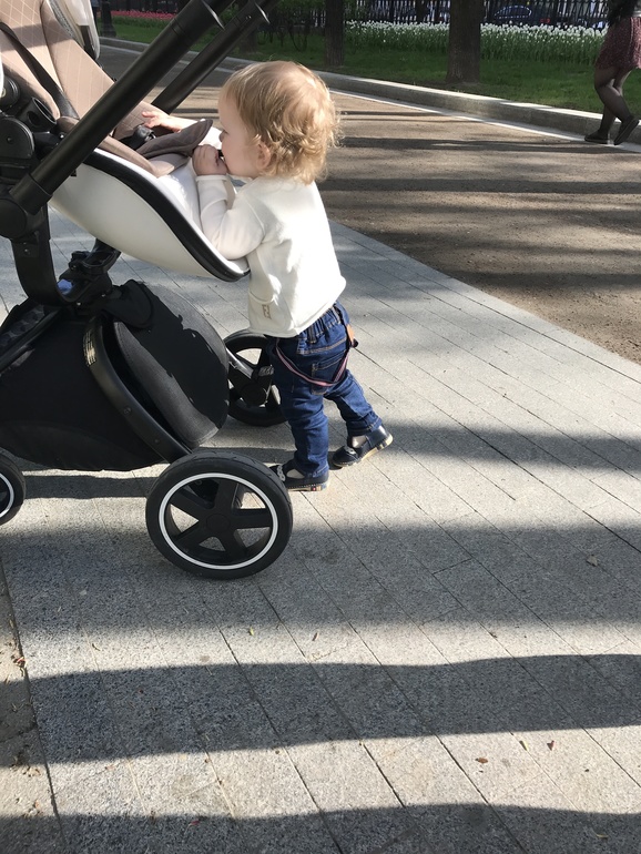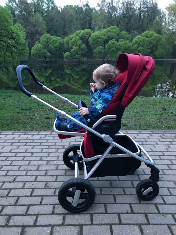 Компактные коляски все еще не распакованы. Потому что у дома в парке кататься удобно на nuna ivvi (вездеходные колеса, шагает по двум лестницам подъезда, гигантская корзина в которую влезают наши взрослые куртки, детская сумка, шлем и беговел, если их брать)