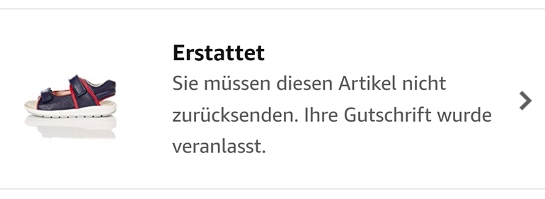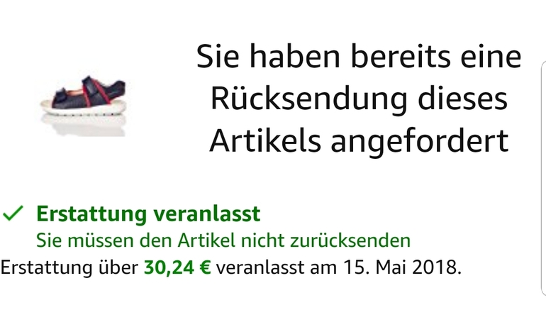 Покупки за рубежомВопрос к тем, кто покупал на Амазоне. Сложилась странная ситуация, ни разу с таким не сталкивалась. Заказала недавно дочке босоножки, деньги со счета сняли. Босоножки пришли вовремя, все хорошо кроме подошвы, она просто дубовая. Естественно я решила отправить их назад. Замечу, покупала как Амазон прайм, то есть напрямую у Амазона. Оформила возврат, жду этикетку на возврат, а вместо этого они мне пишут, что сандалии я возвращать не должна. Я решила, что это какая то ошибка. Вчера мне на счет вернули деньги, этикетку на возврат не прислали и везде написано, что возвращать товар не надо. Вот что я вижу: