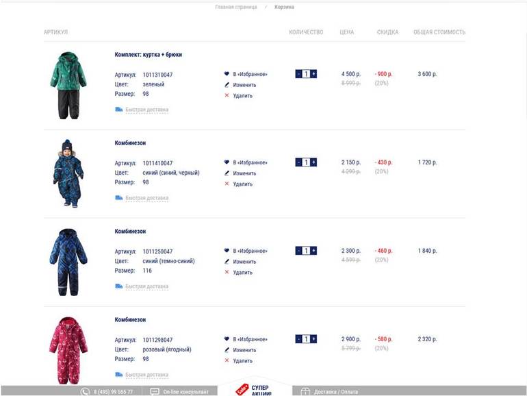 Спасибо! Сделала заказ, комбез Лесси с бесп доставкой всего за 2550 вышел, и скидка сработала