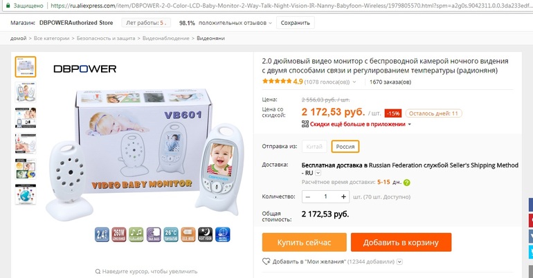 Техника для детейДевочки, кому актуально! Появилась в продаже видеоняня в том магазине на Али, у которого мы уже неоднократно покупали (себе и друзьям). Некоторое время назад у этого продавца этой видеоняни не было в продаже.