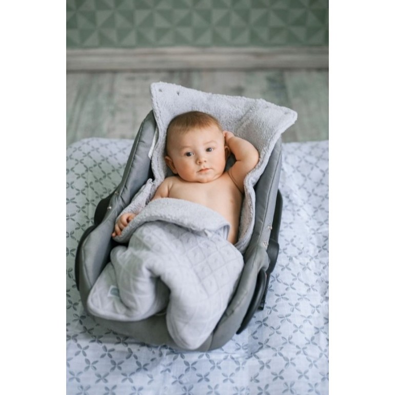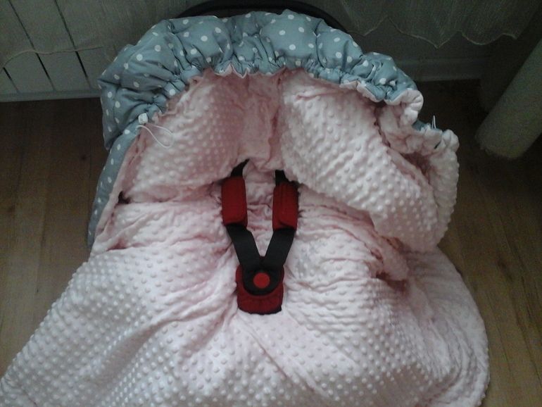 Со второй дочкой у нас был подобный, только не конверт, а плед с прорезями для ремней. Мега-удобная штука оказалась! Ребёнка дома в тёплом слипе сразу в люльку, пристегнула и пледом сверху укрыла, до машины донесла и раскрыла. И ребёнок правильно пристегнут, и не жарко.