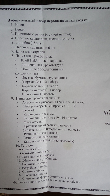 Я решила не покупать то, что мне непонятно: рабочие тетради, форму на физру (цвет мало ли какой-то особый).