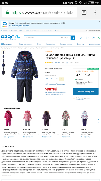 Этот комплект Лесси я видела живьем в ДМ. Ну так.., ничего особенного. Расцветка унылая, качество материалов хуже, чем у Реймы.