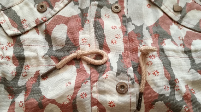 Красивая расцветка. Ткань наподобие плотного денима, без подкладки. В талии шнурок-утяжка.