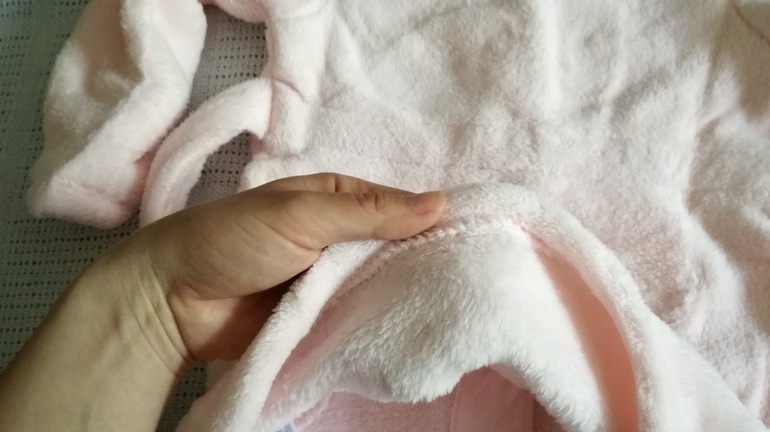 Мягонькая, как и ожидалось. Застегивается так же сзади. На ногах противоскользящие наклейки.