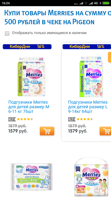 Распродажи. Скидки. Акции.Купи товары Merries на сумму от 1000 рублей и получи промокод на 500 рублей на Pigeon
