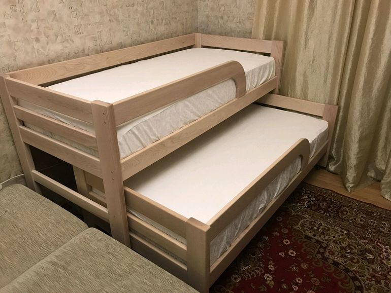 Детская комната : мебель, постельное белье, предметы интерьера и аксессуарыДумаю всё же над выкатной. Размер нужен 160×80. Хочу, чтобы нижний ярус можно было сразу задвигать, не убирая одеяло и подушку. И очень важен стиль, нужна белая глянцевая, из дерева, никаких резных узоров.