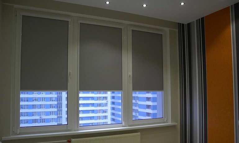 вот пример из интернета, только у нас белые, опускаются они только на ночь, а сверху как обычно тюль и портьеры.