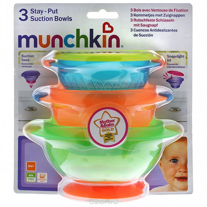 Манчикен три в наборе покупала на айхерб. Крепится отлично к гладкой пластиковой поверхности (к столику стула для кормления, например). Взяла на дачу, думала к клеенке на столе получится - нет (