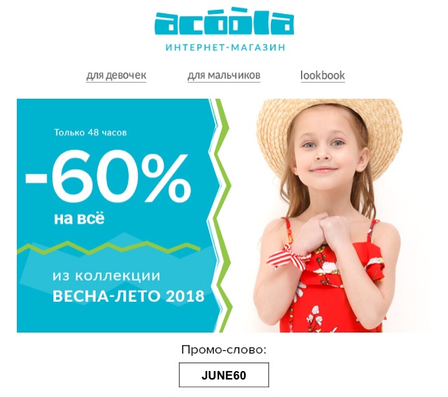 По промокоду JUNE60 скидка на коллекцию лето 2018