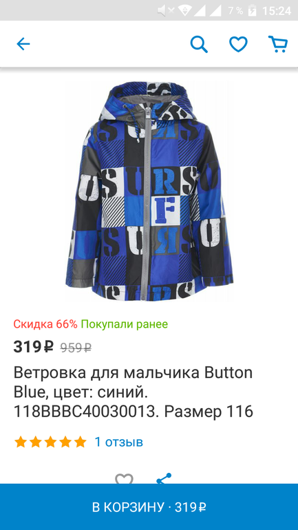Распродажи. Скидки. Акции.Например, Ветровка для мальчика Button Blue, цвет: синий. 118BBBC40030013. Размер 116