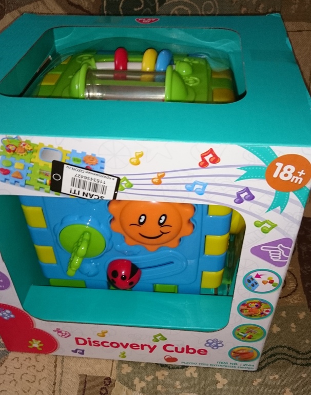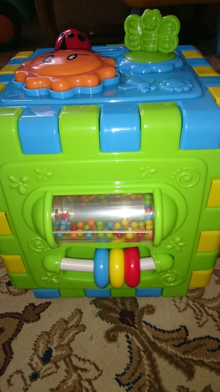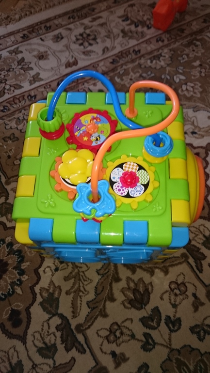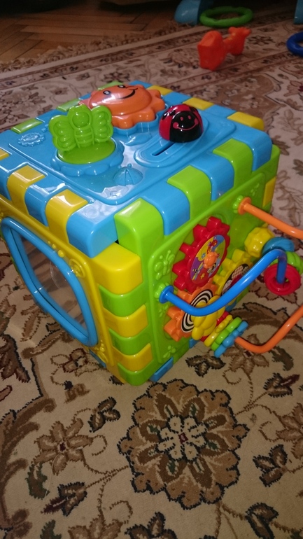Игрушка очень-очень классная. На коробке возраст 18 месяцев +, ноя думаю она будет интересна и малымам младше. Маше 15 месяцев-сейчас этот куб одна из любимых игрушек.
