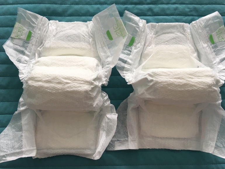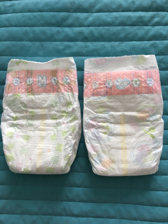 ПодгузникиПомогите определить, подделка или нет? Куплены были на Озоне, на ощупь мягче и тоньше, но при намокании внутренний гель комкается и мне кажется быстрей полоска темной становится (левые)
