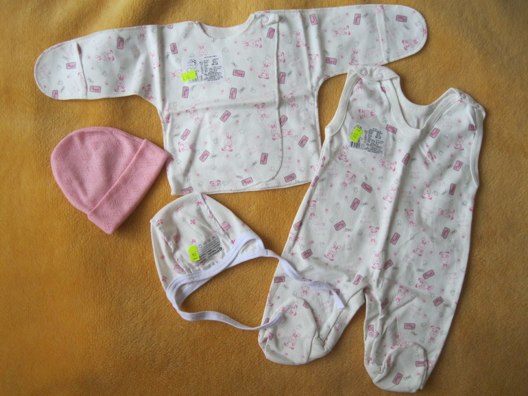 Хб слип (у нас была распашонка и ползунки с грудкой), чепчик и\или тонкая трикотажная шапочка, плюшевый комбез.