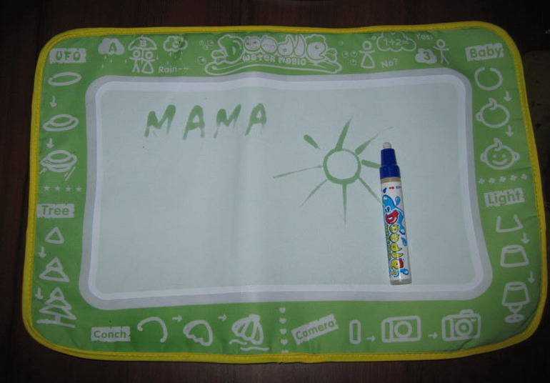 Коврик тоже любит, но пока больше я рисую, а она наблюдает. Нравится тем, что даже если эту ручку в рот берет, то там ничего вредного нет, просто вода.