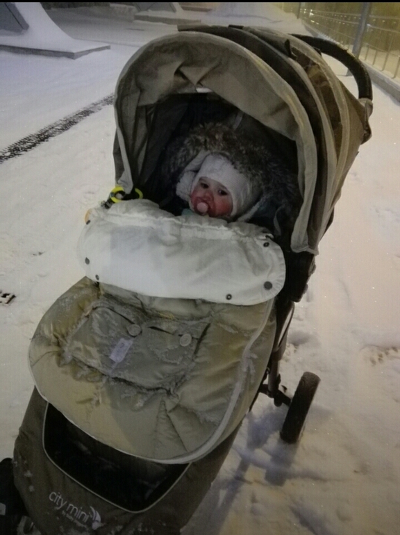 Пока мелкая была, то кверху подтягивала, чтобы в ногах много воздуха не было, подросла расправила во всю длину. От непогоды очень спасал, не представляю как ребенка катать в одном комбинезоне, снег же холодит, а пока час два погуляешь сугробик будет))