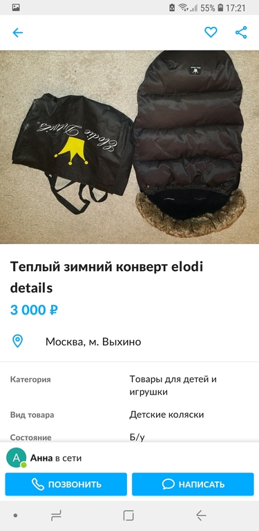 У меня был оригинальный Элоди, он офигенный. Б/у брать не стала бы, легко нарваться на подделку. У оригинальных сзади есть нескользящая ткань, насколько я помню. Мои спали на улице в любую погоду, поэтому конверт отлично послужил нам. Я его любила значительно больше мехового Криста. Он такой теплый и пушистый, лёгкий и удобный и красивый:)
