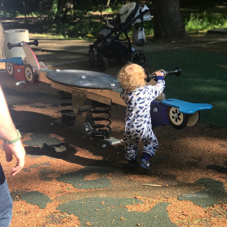 Своему говорю «качелька занята» подойдем попозже/ пойдем на др площадку. Но его желание качаться для нас реально уже через край 😅😹🙈. Я сегодня уже спиной чувствовала, что вся площадка ждет нашу качельку, сама снимать боялась, снял папа и все равно ор.