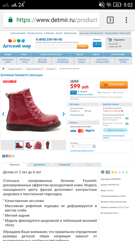 Не угадаешь( Я своей так туфли и босоножки взяла (ортопедия). С размером пролетела. Теперь лежат. Туфли может осенью оденем, а босоножки очень большие. У тебя хоть цена маленькая. Уже зареклась брать обувь заранее, а тянет.