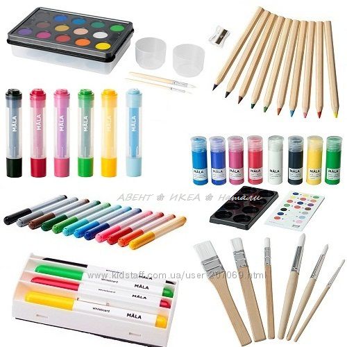 У Икеи чудесные карандаши толстые, фломастеры отличные. Бумага пачкой (белые листы + цветные) - можно спокойно брать на все поделки, она плотная, хорошо прокрашенная.