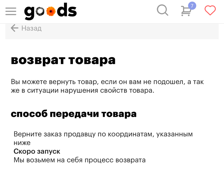 И проверять товары стоит не только на соответствие, а еще и на состояние. Если приехал брак, то пишете письмо на service@goods.ru, затем вам звонит продавец и присылает курьера (вы НЕ обязаны тащить товар к ним), заполняете заявления, ждете возврат и заменеый код от гудз (вот тут главные задержки).