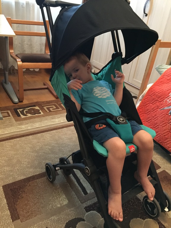 У нас такая, не очень подхолит для высоких деток, там ремни за спиной в районе лопаток тогда. Плюс сын немного соскальзывает с сидения постоянно, угол такой там. Поэтому сейчас купили другую, а эта на поездки только