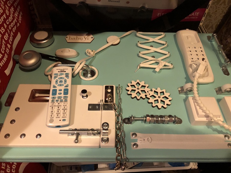 У нашей есть ещё дисковый телефон, вернее диск от него. Но бизиборд - это ненадолго)