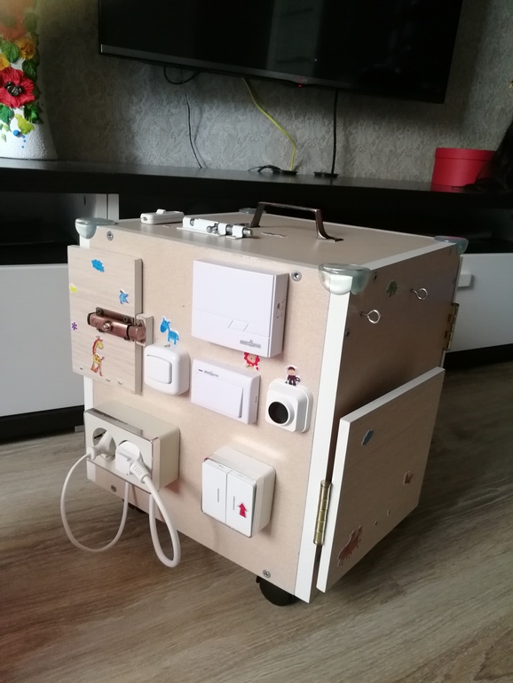 Здравствуйте. Как раз нам актуально. Муж сам делал старшему на полгодика. Очень нравился, прожил три года, замучали детки, поэтому младшему заказали готовый. Что интересно моим: розетка, розетка и еще раз розетка, только игрушечная спасла! Сын четко уяснил, что в его розетку только можно вставлять вилки и в никакую другую.