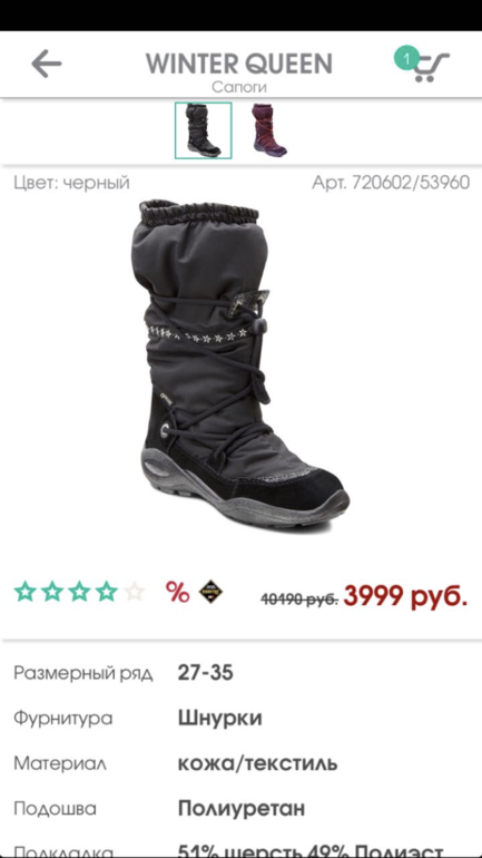 У нас такие 2 пары лежат, они на худую ножку. Еврозима-демисезон, на лёгкий минус. В фамилии по 799р были, по их карте около 750 выходили.