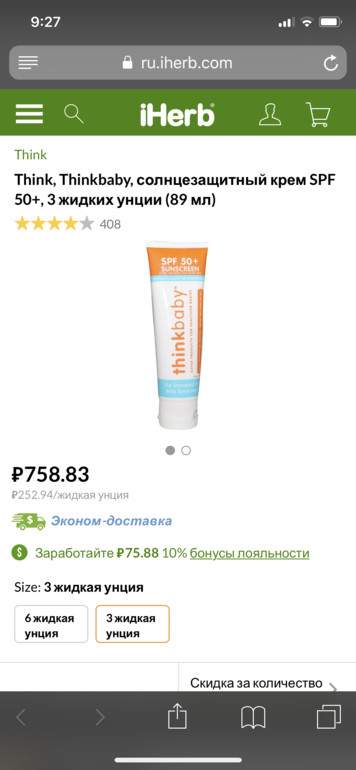Thinkbaby 50 c iHerb используем с 6 мес, приходилось оказываться на палящем солнце и покраснений не было. Себе на лицо наносила тоже приятные впечатления остались. В обзоре у Анны Левадной он на хорошем счету по безопасности компонентов. Покупала за 700 с чем-то маленький объём, а он оказался не таким уж и маленьким