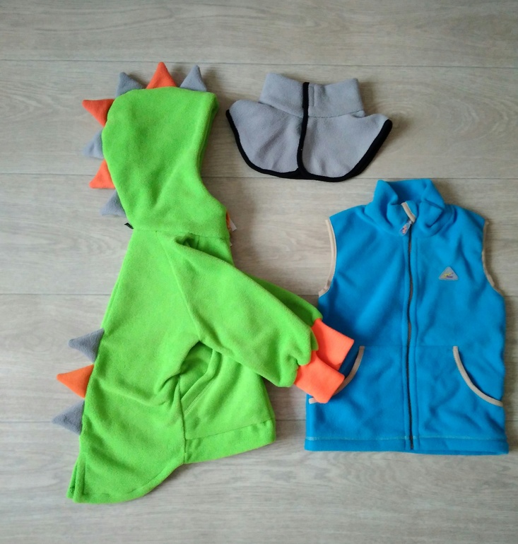 Брала по распродаже, поэтому получилось не дорого, надо сказать, что все вещи хорошего качества, флис плотный, мягкий, теплый, не скрипит. Фурнитура надежная. Толстовка дракончик смотрится прикольно, брала на подарок, но когда, примеряла на своего все домочадцы сразу сказали " это Юрику и точка, ищи другой подарок!"