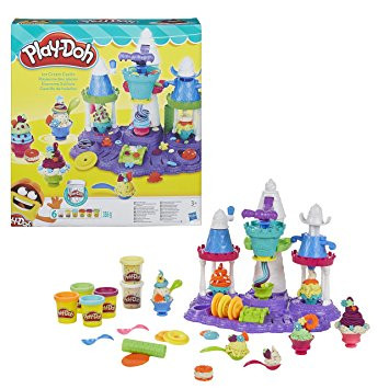 но не знаю как он, пишут что оттиск не сильно виден и двойные десерты мне нравятся. Доче показывала картинки, но она не сильно представляет что это, у нас были более малышковые наборы плей до, но показала на двойные десерты))) и замок мороженного, он есть в продаже, но пишут что с этим набором большой расход пластилина