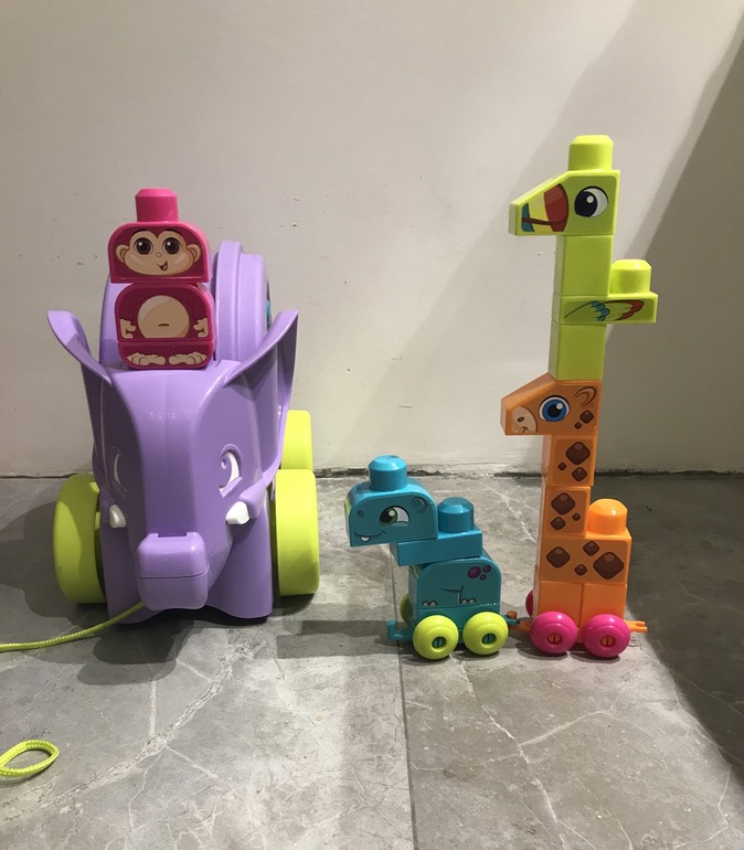 Это мамина радость 🤤, слони Megabloks. Бывает сиреневым и бирюзовым. В боксе у него компания. И когда слон едет, то бокс крутитсяи цветные штуки изображают стиралку 😹.