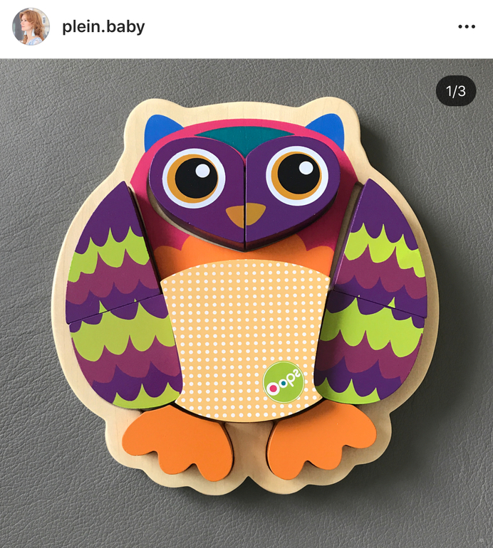 У нас еще сова в ходу (она простая, хотя много частей). Бренд Oops. И их же магнитный вертикальный пазл (фото нет, но он просто огонь как идет).