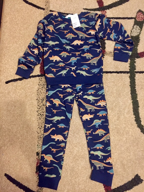 Я узнала о распродаже в наличии были динозавры, кран и синий. Показала ребёнку 5 лет, выбирай какой тебе? Динозавр и трактора отмёл сразу, со словами в пижаме ходить не буду. Выбор остановил на синем. Взяла 110-116, ещё не мерили, но по виду нормальный должен быть.