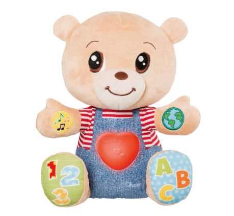 Всем приветик. Вчера купили доченьки этого мишку, девчонки мишка просто огонь, он нам безумно понравился. Именно товарами chicco не пользовались раньше, все игрушки разных брендов, вот эта игрушка у нас первая от этого бренда, и я просто в восторге от неё, теперь я думаю, у нас будет больше игрушек от бренда chicco. Все на столько качественное. По цене конечно не дешевый, но он стоит этих денег, он отлично будет развивать вашего ребенка. Просидели весь вечер, играя с этим медведем, он настолько интересный, даже нам с мужем было интересно, приятно было смотреть на эмоции нашей принцессы. Доченька спала с ним всю ночь, кушать теперь приходит только с ним, теперь просит, что бы я купила горшочек с медом для нового друга)) Мишка очень мягкий и приятный на ощупь, пошит очень хорошо, нитки нигде не торчат. В ушах у него есть прикольные шуршалки, а в лапках кнопочки. Мишка учит счету от 1 до 10 с помощью песенки, и так же учит первым буквам алфавита. Ещё он рассказывает 5 историй о 5 эмоциях. Доченьке очень нравиться нажимать на сердечко, которое находиться на животике, при нажатии оно меняет цвет, каждый цвет обозначает свою эмоцию. Я считаю, это будет самым лучшим подарком для вашего малыша.
