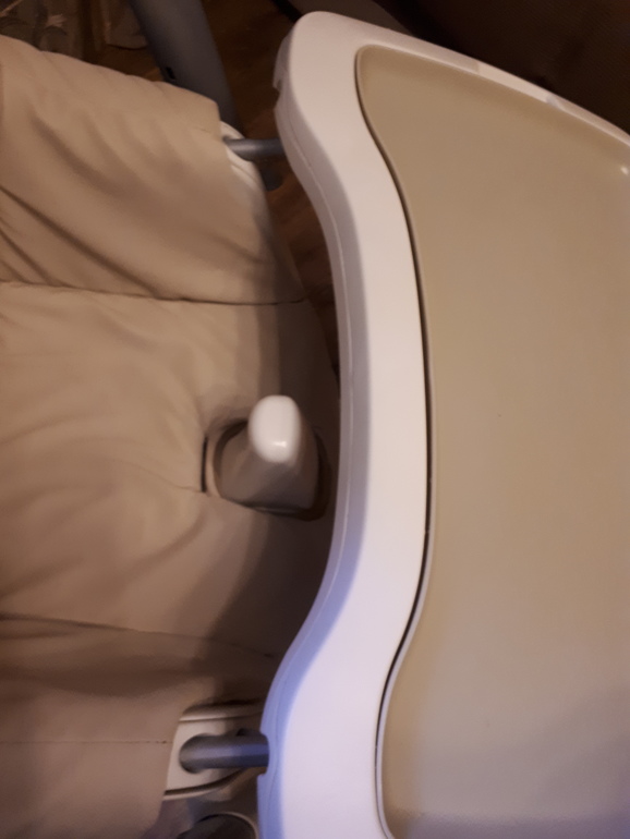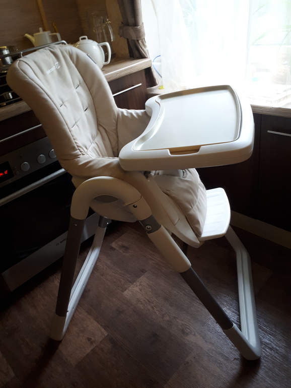 Столик аккуратный и ребенку удобно учиться есть самостоятельно-правильно расчитана высота от сиденья до стола( подносик аккуратный вынимается и легко моется). Отодвигается. Между ног фиксатор можно снять.подножка регулируется по высоте