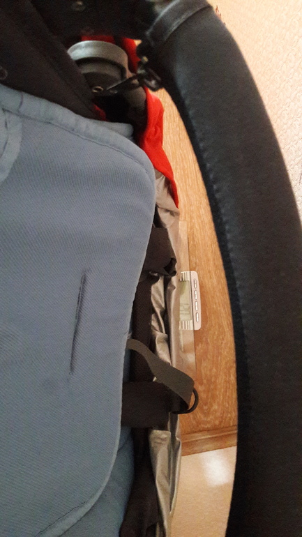 Спинка из двух частей, действительно. Не понимаю как она должна складываться, верхние ремни там специально длинные чтобы ребёнок мог перемещаться от спинки к бамперу, я вообще пристегиваю только низ. Регулировка только на шнурке не удобная, одной рукой не поднять.