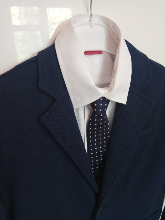 1)Трикотажный пиджак. Носим на праздники с белой рубашкой, на каждый день с лонгами и можно подвернуть рукав.
