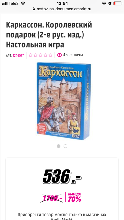 Евгения,а как посмотреть наличие каркассона по Москве? у меня вообще не грузится кнопка Ниличие в магазине(((. И сам сайт медиамаркт криво открывается,игру открывает,но без картинок