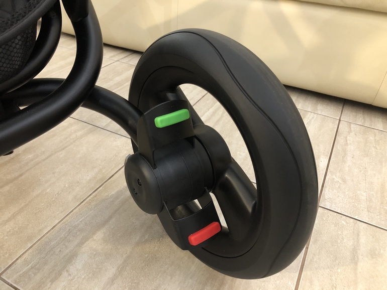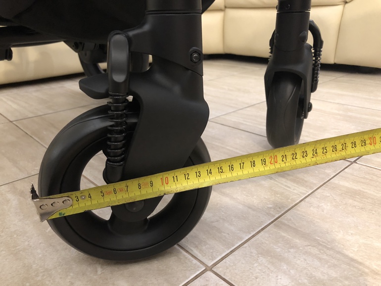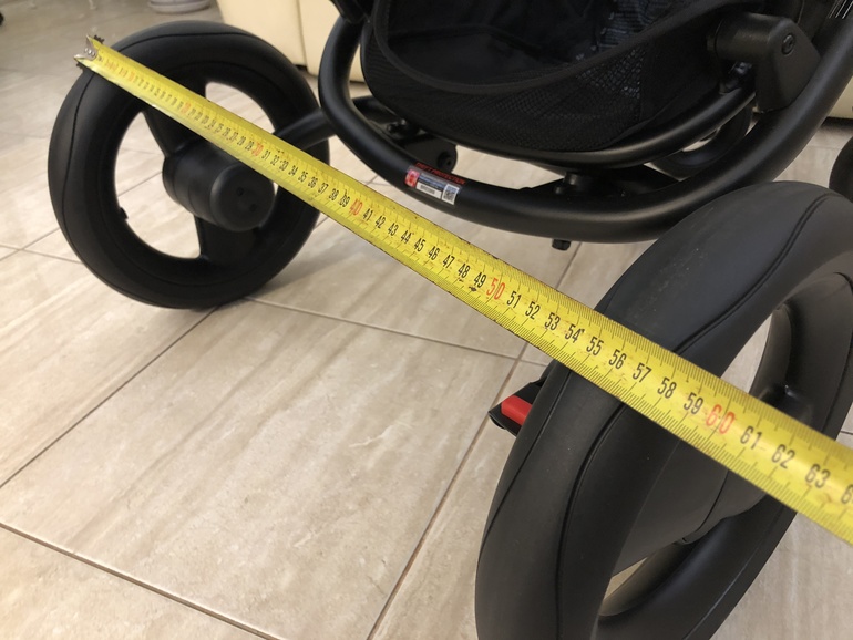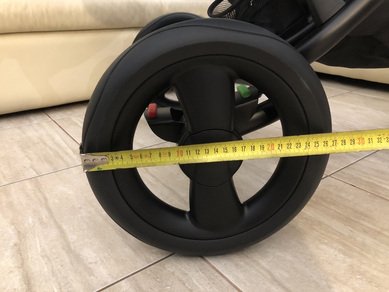 Колеса здесь гелиевые, продавцы уверяли, что такие просто нереально проколоть, проверим ;) Сразу сделала несколько фото с колесами, шириной шасси. Знаю, что для многих этот вопрос важен (сама с рулеткой бегала в магазин перемерять когда выбирала)))