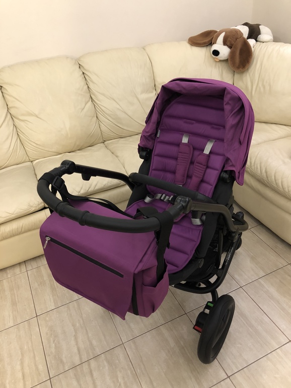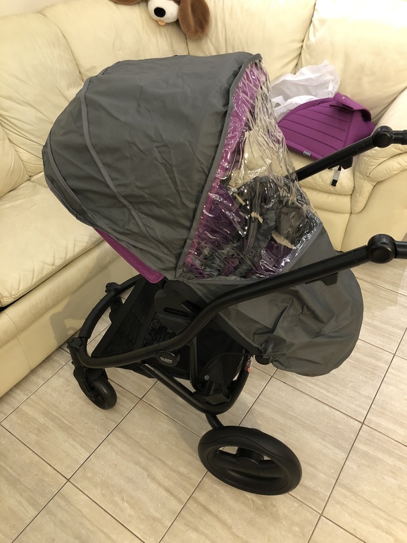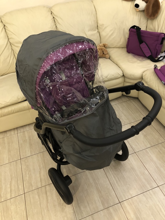 В базовом комплекте сразу идет дождевик, накидка на ножки. Обошлась она нам в 44 тысячи.