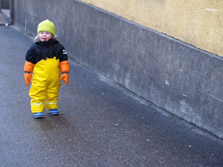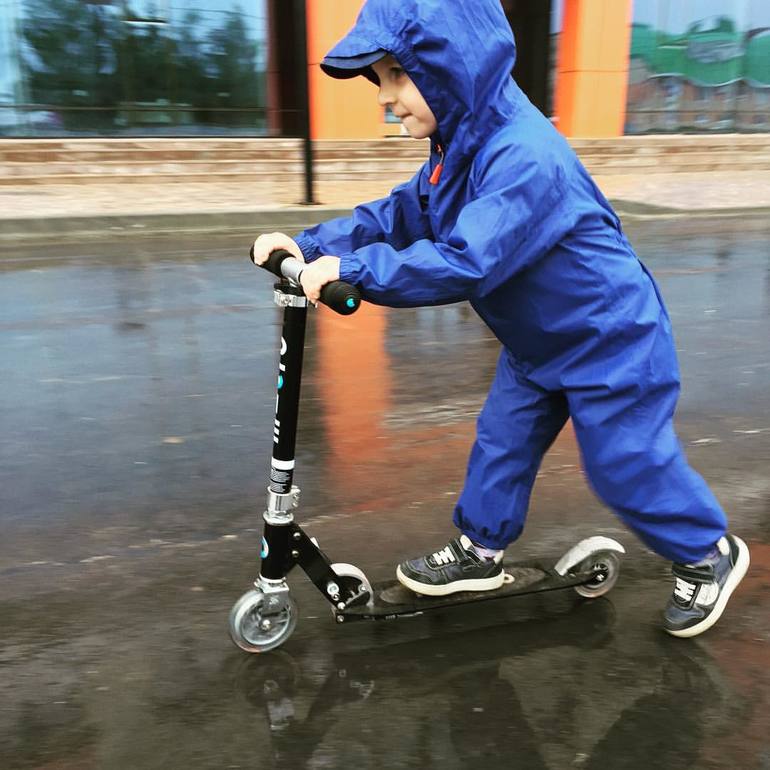 В Финляндии дети до школы носят такие костюмы осенью и весной. И через комбез не чувствуют ощущения мокрой ткани.