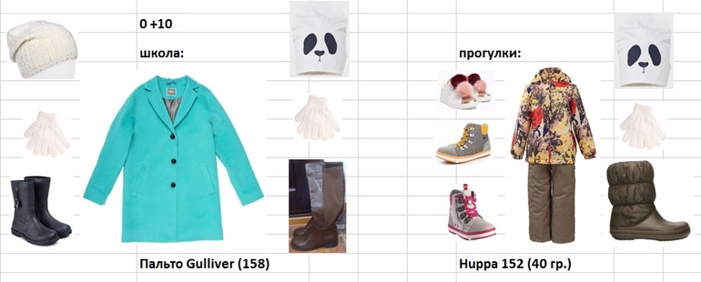 На гулянки комплект Huppa c 40 гр. утеплителя (650р. -озон - с учётом "спасибо"). С обувью как получится. Боюсь, что сапоги Crocs (1250р. - Kupivip) мы совсем перерастём (сейчас прям впритык. Любой рост ноги и всё(). Так что на температуру повыше с джинсами кеды Stradivarius (800р. - фамилька), на пониже (меньше +5) со штанами кеды Reima (сейчас розовые - 1800р. - озон, если нога подрастёт жёлтые - 2000р. - Lamoda). На эту погоду шапок/перчаток нам хватит (Mini Rodini с пандой вообще классная шапка... двусторонняя, мы на пару от неё в восторге. Около 900р. - Бэбишоп).
