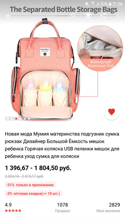 У меня подобный рюкзак с Али, очень нравится, но продавец другой и бренд тоже. Только я бы не сказала, что он для коляски - все же довольно большой и неудобно. Но я с ним езжу в поликлинику, очень удобно, и в дальнейшем буду использовать в поездках и по городу и в отпуск, он супер, все продумано, где термо, где непромокайка, куча отделений, все вмещается.