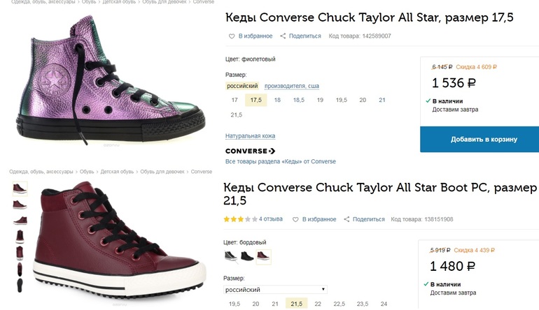 А ещё там офигенные Конверсы есть за копейки. Одни нат. кожа, вторые пусть и кож.зам, но выглядят просто бомбически (там фото в комментах есть). Жаль, дочка уже переросла.