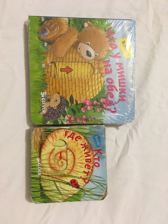 Книжки нижнего слоя все с клапанами. Верхняя с подвижными элементами. Если увидите - их можно брать за любые деньги, настолько хороши. Возраст 1-2 года. Воробей с 5 мес пойдет.