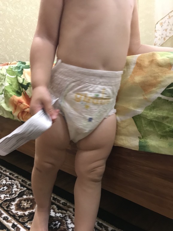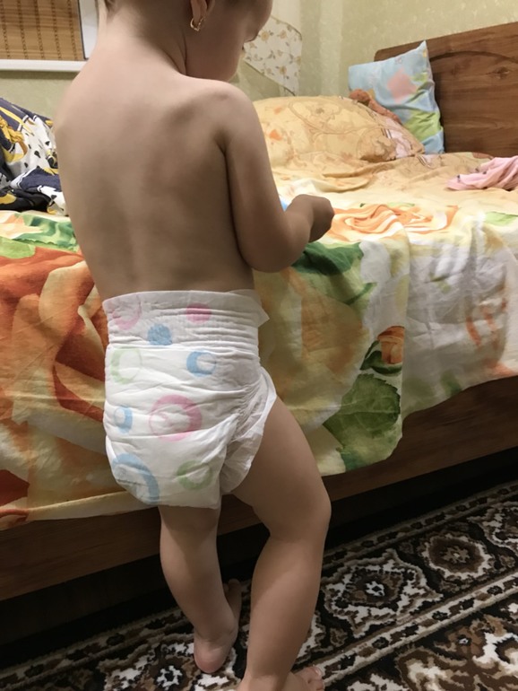 Очень-очень мягкие, нежные, с надежными резиночками , внутренняя поверхность с тиснением. И очень интересный индикатор, на сухом подгузники он синий, при наполнении он пропадает!
