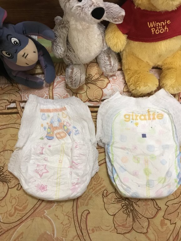 Трусики Жирафики, в принципе понравились, они Беленькие, без запаха, хорошо сидят, тонкие и дышащие. Но! Нет защитных оборочек-резиночек " нормальных", индикатор влаги есть, Но! Не рабочий вообще ) странно) Протекают! Это мы еще не водохлебы)