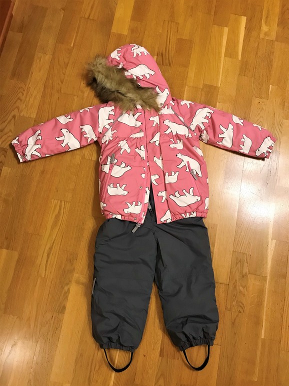 Он прям суперский! Невесомый, очень мягкий. После Реймы ткань кажется совсем легкой, не говоря уже про Густи и Премонт. Не знаю, конечно, как по теплоте будет, тут вроде 200 грамм и флисовый подклад, но он прям тонкий. На мороз у нас слитник Керри, а этот мне на теплую зиму надо было как раз, но в прошлом посте я спрашивала, много комментов было о том, что он очень теплый. Проверим. Это, конечно, не комплект, а куртка и штаны отдельно. Штаны, кстати, довольно широкого кроя, на мою попастенькую дочку самое то.